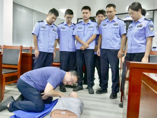 我院重症医学科科主任乐道平通过理论讲解和示范操作,详细介绍了心肺复苏术的操作要点和自动体外除颤器(AED)的使用方法。民警们在医护人员的指导下进行实操训练,真正掌握救命技能,在今后的执勤中能更加从容应对突发情况;针对公安干警工作压力大、作息不规律等特点,我院神经外科主管护师谢丽玲开展高血压防治专题讲座,讲述高血压的成因、危害,重点介绍了日常预防和科学管理方法。