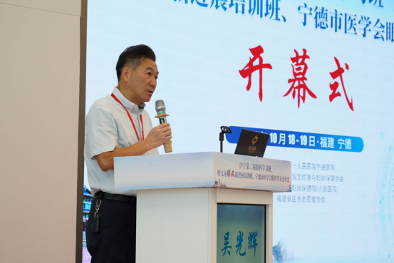 本次会议采取线上与线下相结合的模式举行,福建省眼科分会主任委员郭健教授线上致辞。上海市第一人民医院宁德医院院长、眼科主任医师郑志教授作开场报告,就《接切术中PVD诱导技巧》分享了宝贵经验。