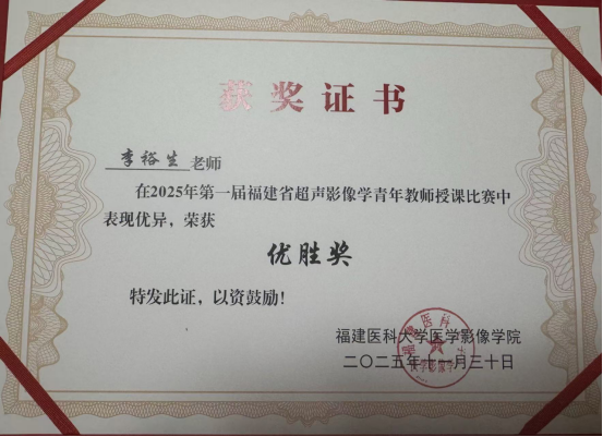 11月30日,首届福建省超声影像学青年教师授课决赛在福建医科大学旗山校区落下帷幕。本次比赛由福建医科大学医学影像学院主办,采用视频初赛与现场决赛相结合的两阶段赛制。比赛汇聚了福建省多所高校直属及非附属医院的青年教师。我院超声医学科青年技师胡毓婷和李裕生凭借扎实的专业功底、出色的授课技巧与创新的教学思维,从众多参赛者中脱颖而出,分别荣获大赛三等奖及优胜奖,充分展现了我院青年医师卓越的专业素养与教学风采。