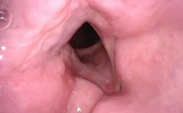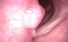 一年前,王大叔因持续声音嘶哑且服药无效,来到我院耳鼻咽喉头颈外科门诊就诊,接诊的主任医师李慧凤为其安排电子喉镜检查,发现其右侧声带存在粗糙不平的菜花样新生物,高度怀疑恶性病变。后续病理活检及影像学检查确诊为高分化鳞状细胞癌(喉癌)。