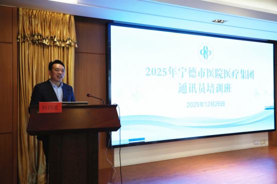 为提升医院通讯员科普视频策划制作以及舆情应对能力,进一步加强宣传队伍建设,提升健康科普宣传能力及舆情应对水平,12月26日,我院举办2025年宁德市医院医疗集团通讯员培训班。来自医院医疗集团成员单位宣传骨干、我院通讯员100多人参加培训。副院长何昌进主持培训。