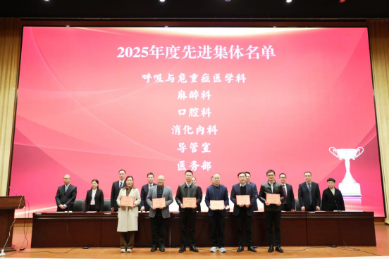 大会还宣读了2025年度先进集体及科研立项、新技术新项目、医疗质量管理奖、优秀带教、竞赛获奖、院外表彰等各类奖项。医院党政班子成员为先进集体颁奖。