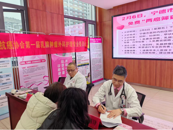 本次义诊汇聚了院内多学科的优质医疗资源,团队成员涵盖妇科、甲状腺乳腺外科、肿瘤内科、体检中心、超声医学科等多个科室的医护骨干。肿瘤学博士、福建省引进高层次人才刘剑锋,我院妇产科学科带头人陈惠华,甲状腺乳腺外科主任医师胡廷辉,宁德市妇幼保健院主任医师陈锦果等专家凭借丰富的临床经验、坚实的专业基础和精湛的诊疗技术,为前来咨询、筛查的女性提供全方位、个性化的医疗服务,使大家在当地即可享受到高质量的医疗资源。