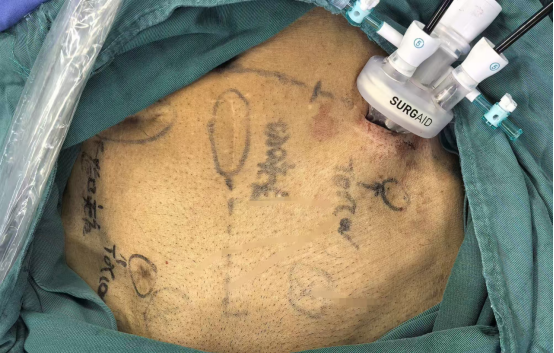 “微”——在极致微创的单孔技术,考虑到患者右侧腹部及脐下布满旧疤痕,团队仅在左侧腹部做一个2厘米横切口,便完成双侧疝气修补;