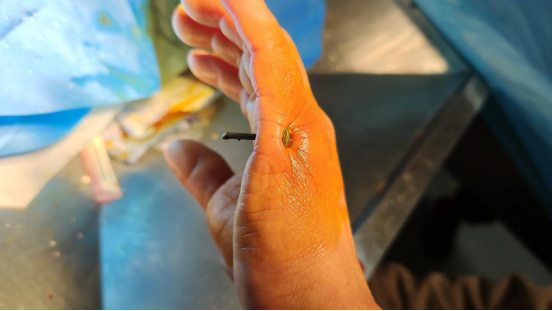 “手被钉子扎穿的那一刻,又疼又慌,大过年的担心没人接诊,没想到到了急诊,医生护士马上就安排治疗,一点都不拖沓。”回忆起大年初一的突发状况,38岁的吴先生(化名)仍心有余悸却也满怀感激。据急诊科主任医师张发介绍,节日里各类突发情况接连而至,这名手部被钉子扎穿的患者送来时,伤口较深、情况紧急,医护人员第一时间上前,有条不紊地开展清创、止血、缝合等一系列救治操作,用娴熟的技术和细致的护理,最大程度减轻了患者的痛苦。